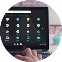ChromeOS is a cloud-first solution built to support the hybrid workforce. Cloud profiles, regular background updates, and access to popular productivity and video conferencing apps, help employees work effectively from anywhere.
